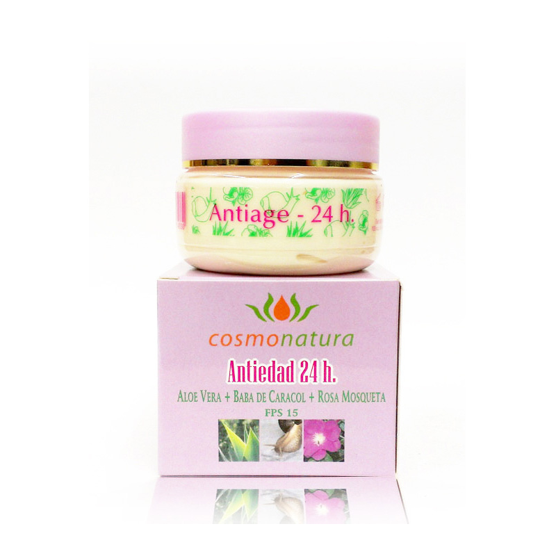 Crema hidratante con aloe vera, extracto de caracol (Helix Aspersa) y Rosa Mosqueta. Ayuda eficazmente a prevenir y atenuar los signos de envejecimiento, aportando suavidad y elasticidad a la piel.